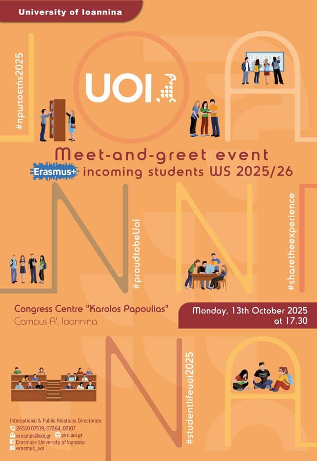 Ταυτόχρονα, θα πραγματοποιηθεί και η υποδοχή των εισερχομένων φοιτητών και φοιτητριών του προγράμματος κινητικότητας Erasmus+.